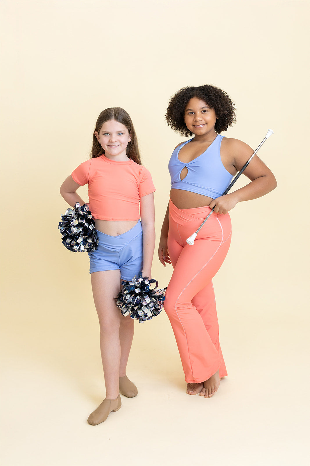 Handmade in the USA from high-performance stretch fabric, these flares blend comfort, style, and empowerment — made for dancers, twirlers, and cheerleaders who refuse to blend in.